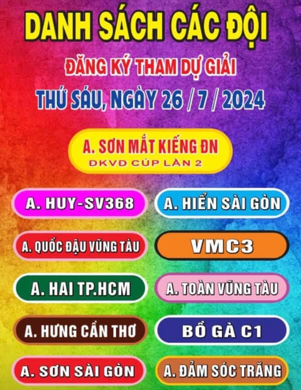 Danh sách đội tham dự: